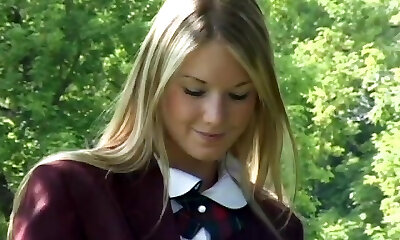 Delectable college doll poses temptingly for an erotic outdoors sloo shoot