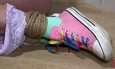 Svelte fresh gal in white stockings is ready to get her fuckholes driopkled