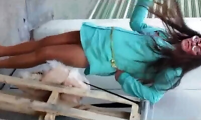 Amateur brunette gly awful bitch was busy with her onanism on bunk couch