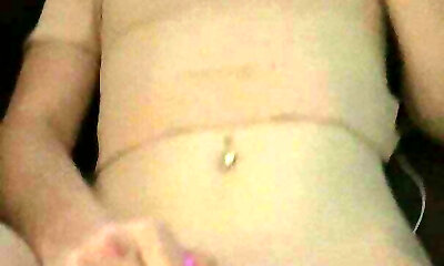 Gross she-male Roolie Stray strokes her cock until reaching an orgasm
