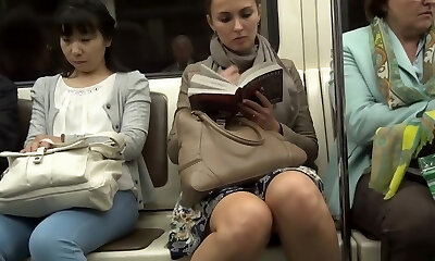 Wank as slutty lady with supef-sexy thighs is well-prepped to show her upskirt