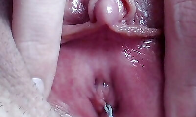 Extreme closeup masturbatio with huge clitoris wet orgasm