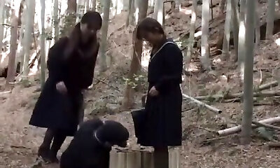 Cruel japanese girl trampl4s her mommy and pees on her face.