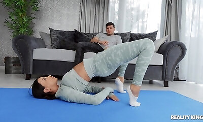 Slim babe Veronica Leal does yoag exercises and gets her cooch fucked