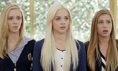 Hot Chabby-booty Ginger-haired Teens In Sexy Fishnet Outfits Ride Their Friend's BBC In a Wild Threesome