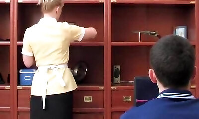 Latina Maid With a Phat Booty Notices Yhat Her Boss Is Jerking On Her And Hurries To Sate His Cock