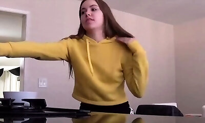 My shy and innocent teen sister doesn't know how to get cum and she practices with my massive bone
