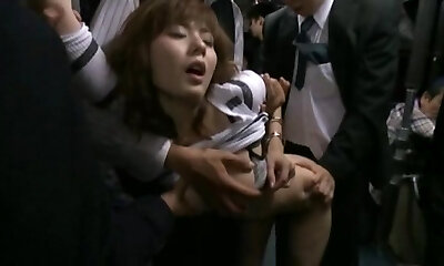 Sweet, Janaese gals rae getting harassed in the bus, but it looks like they like it