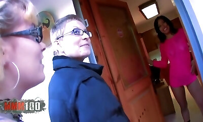 Lesbian facesitting with hairy BBW ganny and lovely blonde teen